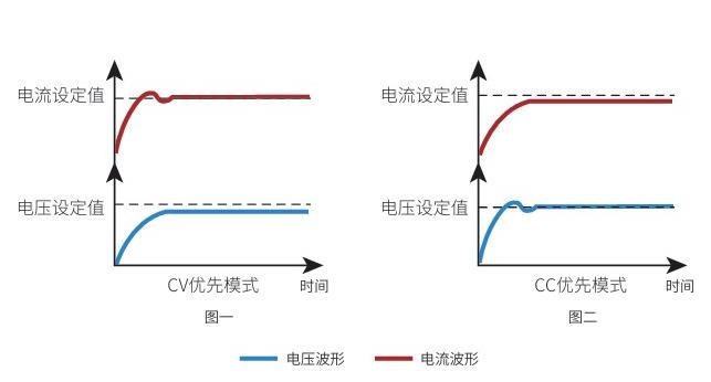 如圖一, 當(dāng)待測組件在測試過程中需要減少電壓過沖的情況下,如給DC-DC電源模塊供電時,應(yīng)使用電壓優(yōu)先模式以便獲得快速而又平穩(wěn)的上升電壓。