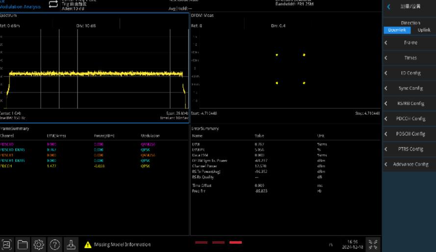 包括上行鏈路與下行鏈路解調(diào),解調(diào)后可觀察信號頻域信息和星座圖