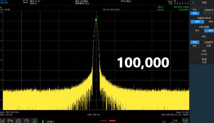 UTS7000A系列信號分析儀,最大可測量頻率40GHz,支持交流和直流耦合,直流耦合狀態(tài)最小可測量2Hz,全頻段頻率計精度低至0.01Hz。顯示平均噪聲電平為-166dBm,相位噪聲在1GHz載波,偏移10kHz下為-108dBc,掃描點