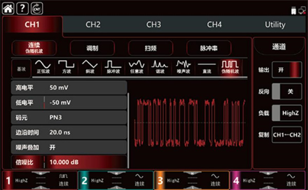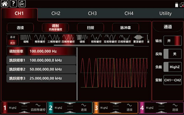 UTG9000T系列函數(shù)/任意波形發(fā)生器,使用DDS直接數(shù)字頻率合成技術(shù),可生成高精度、穩(wěn)定、純凈、低失真的信號,還能提供高頻率且具有快速上升沿和下降沿的方波。是一款高性能、多功能的四通道函數(shù)/任意波形發(fā)生器。