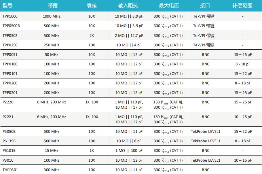 泰克無源探頭主要型號有TPP0051、TPP0101、TPP0100、TPP0201、TPP0200、TPP0250、TPP0502、TPP0500B、TPP5050B、TPP1000、P2220、P2221、P3031、P6101B、P5050B、P6139B
