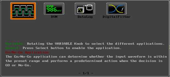 全新GDS-2000E系列支持的APP有, 可用來(lái)判斷Go/NoGo的限制線功能、DVM精確電壓表功、長(zhǎng)時(shí)間數(shù)據(jù)紀(jì)錄功能、以及數(shù)字濾波器功能。讓示波器不僅功能完整,更是一應(yīng)俱全。