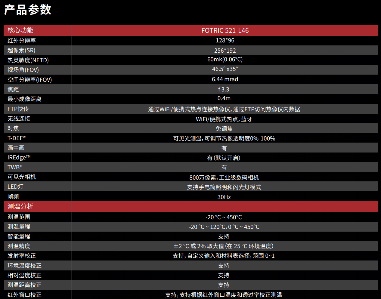 手持熱像儀FOTRIC 521,采用800萬像素,測溫可達(dá)-20 °C ~ 450°C