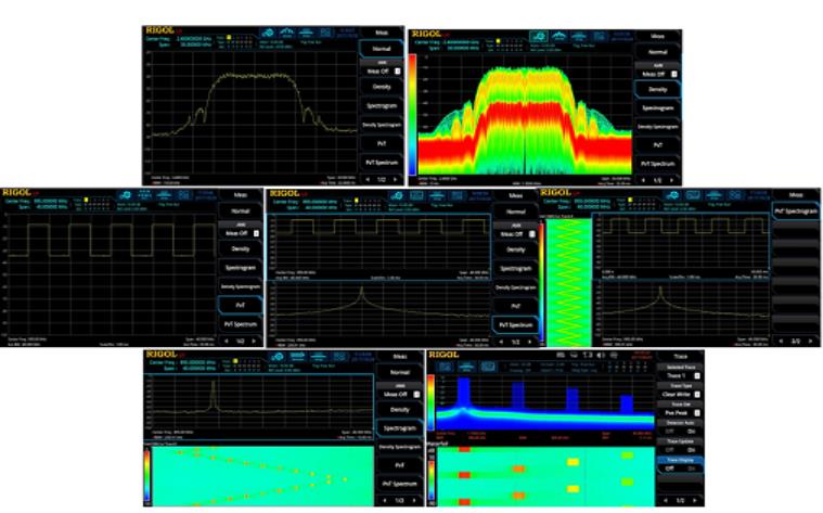 使用RSA5000的7種實(shí)時(shí)信號(hào)顯示模式可以更輕松地捕獲,隔離和分析射頻信號(hào)和系統(tǒng)。功率與時(shí)間的關(guān)系以及頻譜圖顯示了信號(hào)如何隨擷取時(shí)間或連續(xù)擷取時(shí)間的變化而變化。結(jié)合這些呈現(xiàn)方式并在不同模式下使用標(biāo)記和觸發(fā)器,使RSA5000成為實(shí)時(shí)射頻分析和調(diào)試的靈活工具。