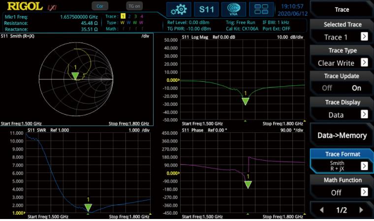 VNA模式可以實現(xiàn)對元器件、電路網(wǎng)絡(luò)的S11、S21以及故障點定 位的測量,通過史密斯圓圖、極坐標(biāo)等多種顯示更精確地表征被測 件的網(wǎng)絡(luò)特性