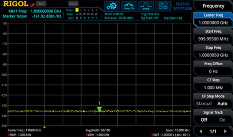 分辨頻率相近的信號對于驗證許多RF器件和系統(tǒng)至關(guān)重要。使用RSA3000,掃描頻寬僅為1 Hz的RBW分辨率帶寬,可以查看相鄰信號的更多細(xì)節(jié)。