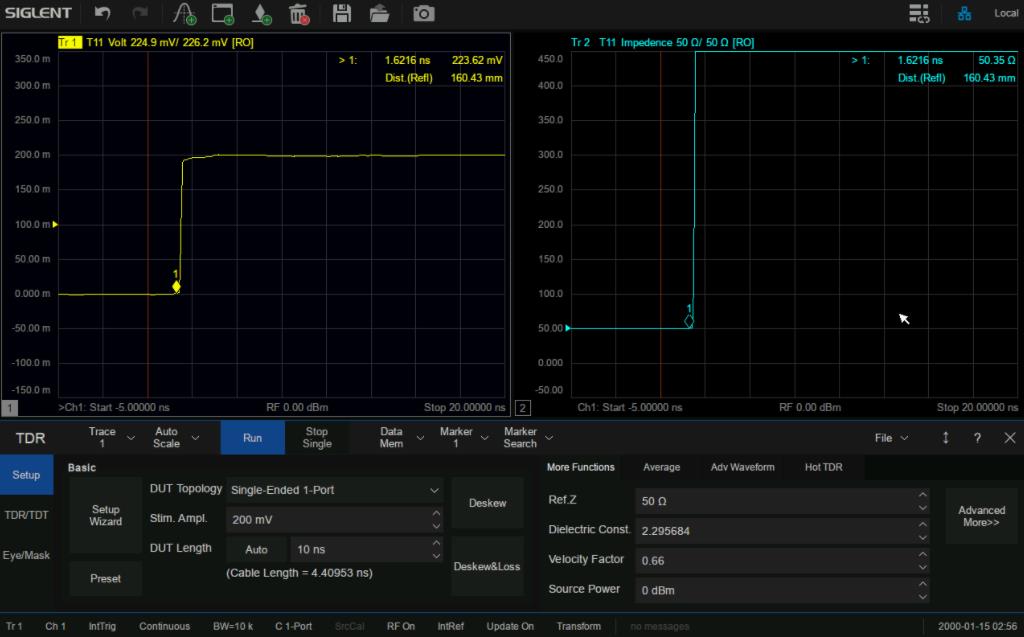 SNA5000X系列支持TDR時域反射計測量功能,可在時域?qū)鬏斁€的特征阻抗,時延等參數(shù)進行分析。