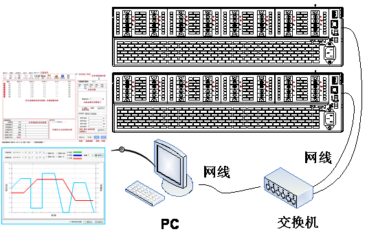 用戶可通過(guò)LAN或RS485接口進(jìn)行多機(jī)集成,通過(guò)FT6110系統(tǒng)軟件可對(duì)負(fù)載系統(tǒng)進(jìn)行所有功能操作、波形顯示及數(shù)據(jù)保存等功能。該軟件系統(tǒng)操作簡(jiǎn)便,功能強(qiáng)大,使用者可輕易上手。