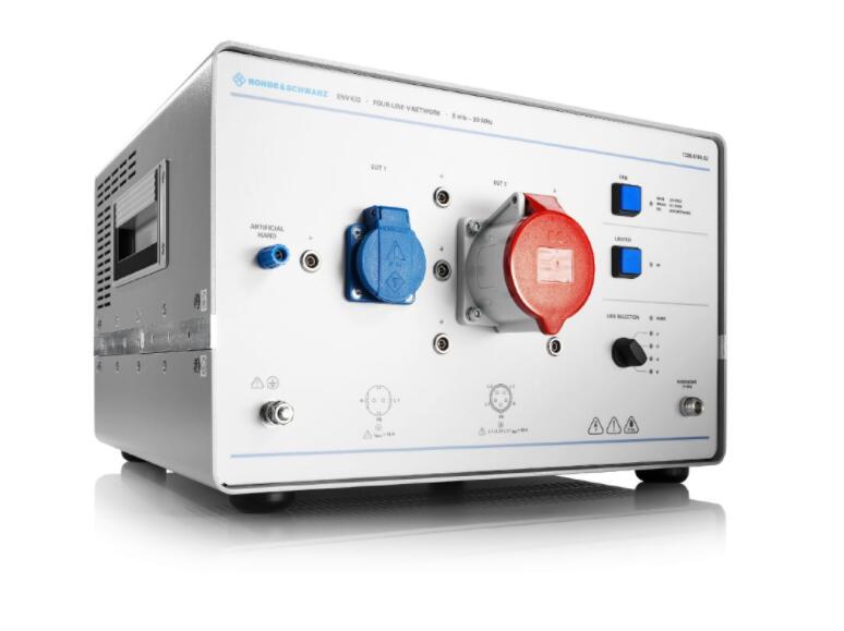 ENV432 四線(xiàn)制 V 形網(wǎng)絡(luò)滿(mǎn)足 CISPR 16?1?2、EN 55016-1-2 和 ANSI C63.4 中有關(guān) V 形網(wǎng)絡(luò)的要求,在 9 kHz 至 30 MHz 的頻率范圍內(nèi)模擬阻抗為 (50 μH + 5 Ω) || 50 Ω。R&S?ENV432 隨附用于連接被測(cè)設(shè)備 (EUT) 的 Schuko 插座 (EUT 1) 和 CEE 32 A 插座 (EUT 2)。V 形網(wǎng)絡(luò)的相位可以使用前面板開(kāi)關(guān)手動(dòng)選擇,也可以通過(guò) TTL 控制輸入(兼容最新的羅德與施瓦茨測(cè)量接收機(jī))自動(dòng)選擇。